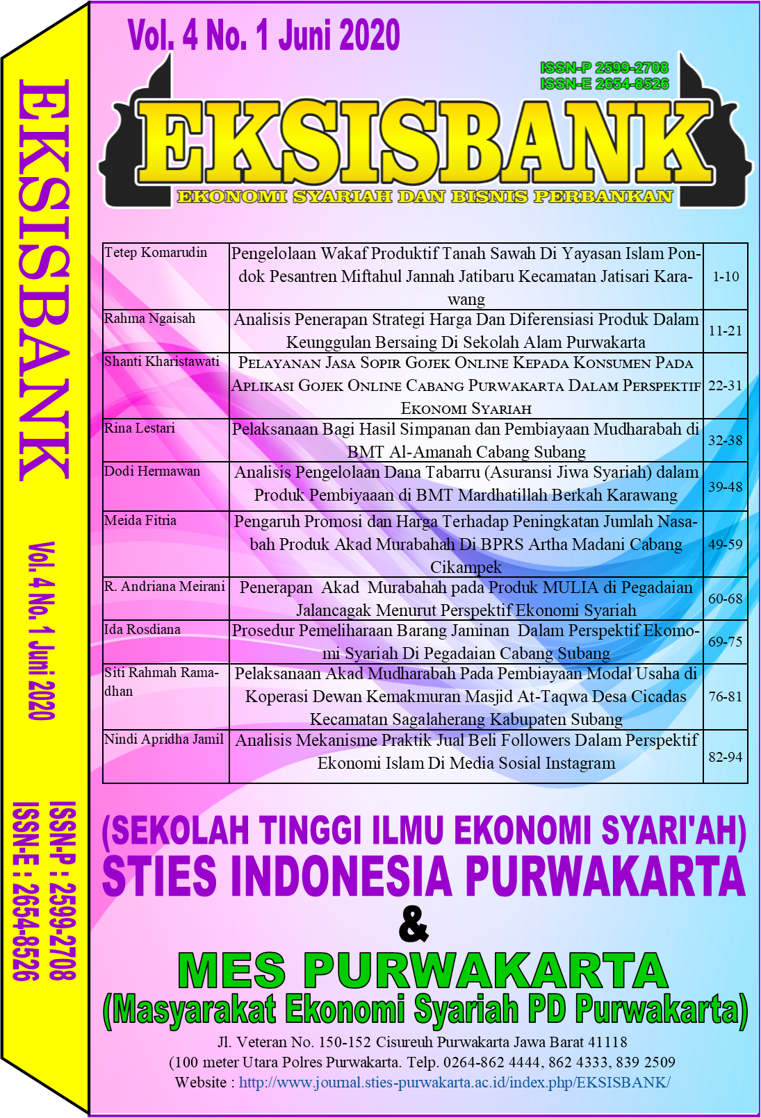 Vol. 7 No. 2 (2023)Eksisbank is a forum for researchers in the field of Banking Economics and Business from colleges or universities, institutions, agencies, and other research institutions to improve their ability to write and publish scientific articles. This periodic Eksisbank journal contains articles on Sharia Economics, Sharia Finance, Sharia Microfinance, Sharia Banking, Sharia Insurance, Halal Industry, Zakat, Waqf, Islamic Social Financial Institutions in Poverty Alleviation, Islamic and Sharia Law in Economics and Finance, Securities and Sukuk Institutions, Sharia Capital Markets and Sharia Banking Business in the form of research results, review articles, and case reports. In an effort to improve the quality of this journal, we invite authors from other universities/universities/agencies to participate in filling out articles in this journal. Alhamdulillah Eksisbank Journal has been accredited by Sinta 4 starting Vol. 4 No. 1 of 2020, in accordance with the Decree of the Director General of Higher Education, Research, and Technology Number 105/E/KPT/2022, dated April 7, 2022 regarding the Accreditation Rating of Scientific Journals for Period 1 of 2022.
